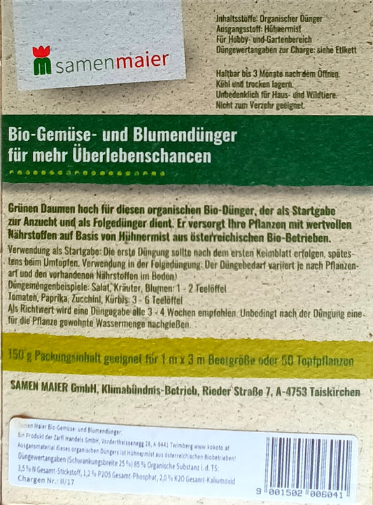 Bio-Gemüse- & Blumendünger | Hühnermist | 150 g